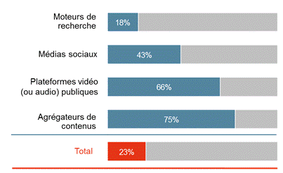 Sur les moteurs de recherche, les études d’usages ont montré que 30% environ des sites Internet consultés après une requête sont consacrés à des biens culturels. La moitié de ces sites permet un accès direct à des œuvres culturels (presse en ligne, musique, jeux vidéo…) et plus d’un tiers proposent des informations autour des biens culturels (comme wikipédia, sites de chaînes de télévision ou de radio…).