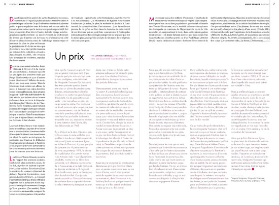 Ce qui me touche profondément dans le prix Marguerite Yourcenar, c’est qu’il reconnaît, non pas un livre en particulier, mais un engagement d’écriture dans la durée. Tel que je le perçois au travers de l’œuvre de mes prédécesseurs qui l’ont reçu, Pierre Michon et Hélène Cixous, il me paraît l’approbation d’une démarche d’écriture marquée par la liberté et la recherche. La reconnaissance d’une voie que Marguerite Yourcenar a illustrée d’une façon puissante, presque insolente dans sa sérénité. De son œuvre, je pourrais évoquer longuement Les Mémoires d’Hadrien, découverts en ma première année d’étudiante, ainsi que ces textes avec lesquels j’ai entretenu une espèce de dialogue avant d’entreprendre mon livre Les Années, je veux parler de Souvenirs pieux et d’Archives du Nord. Je pourrais dire ma fascination pour la personne, la femme qui approchait sensuellement le monde, qui n’a jamais transigé avec ses désirs, notant en 1980, à 76 ans, en face d’une note ancienne, retrouvée, dans laquelle elle croyait avoir détruit son «avidité1»: Non.