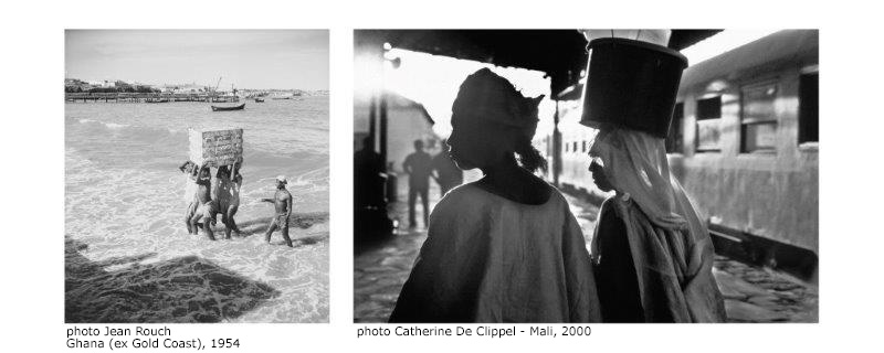 Les clichés de Jean Rouch ont été réalisés entre 1946 et les années 1970, ceux de Catherine De Clippel, des années 80 à aujourd’hui.