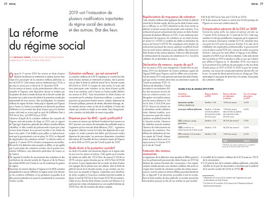 2019 voit l’instauration de plusieurs modifications importantes du régime social des auteurs et des autrices. Un article signé par Pascale Fabre, directrice des ressources humaines et des affaires sociales à la Scam, pour la lettre Astérisque n°62.