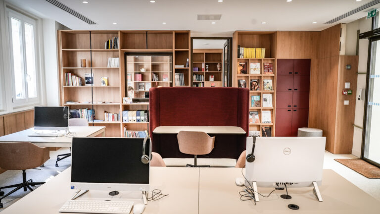 Ce salon est destiné à l’organisation de réunions et de séances de visionnage et peut accueillir jusqu’à 4 personnes assises.
